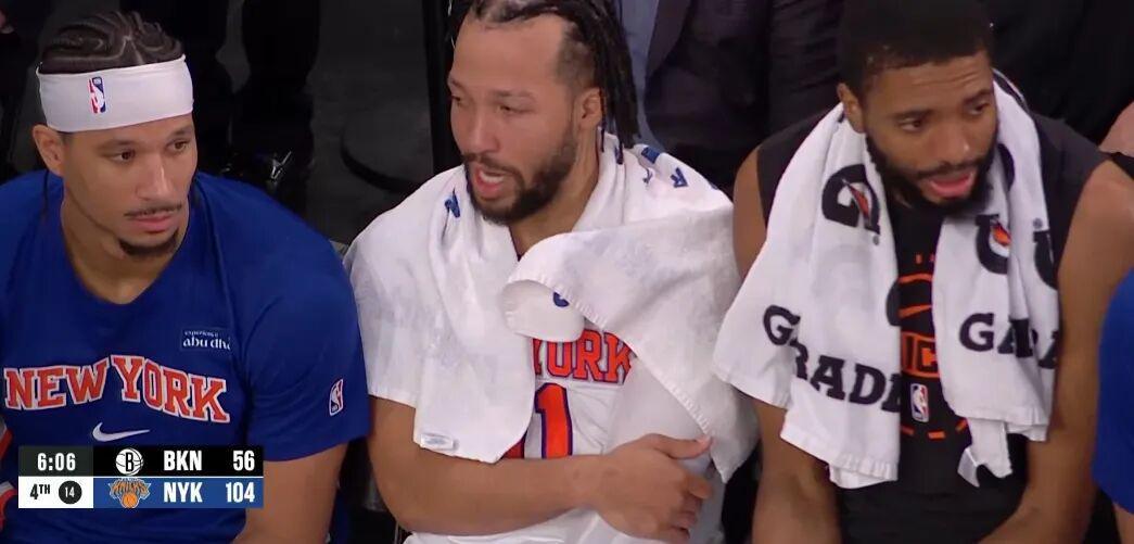 第四节打了6分钟,尼克斯首发五大大主力早早三节打卡下班,板凳对板凳,水兵对水手,篮网末节竟然6分钟0分,6分钟0分,6分钟0分。
