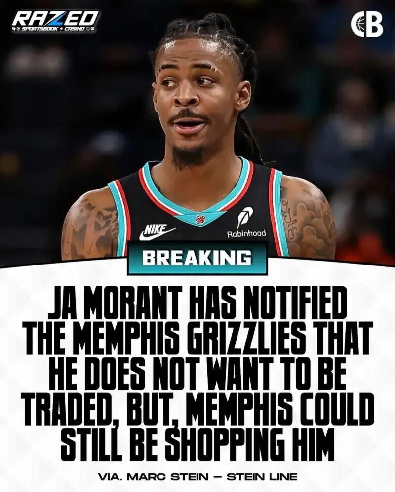 据Marc Stein报道,莫兰特已告知灰熊自己不希望被交易,但灰熊仍可能在交易市场上兜售他……